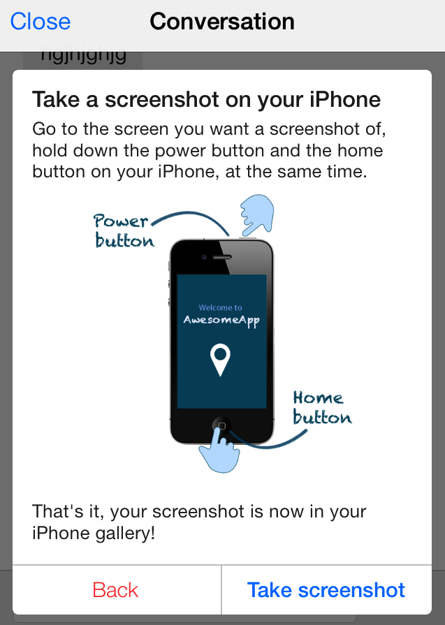 Learn howText for the button in the screenshot widget that shows the user how to take a screenshot