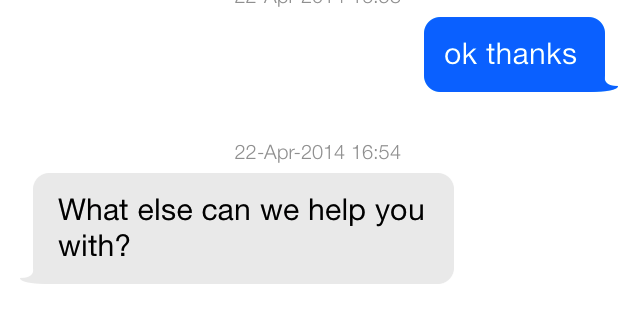 Thanks for messaging us!Footer text for messages indicating issue resolution.