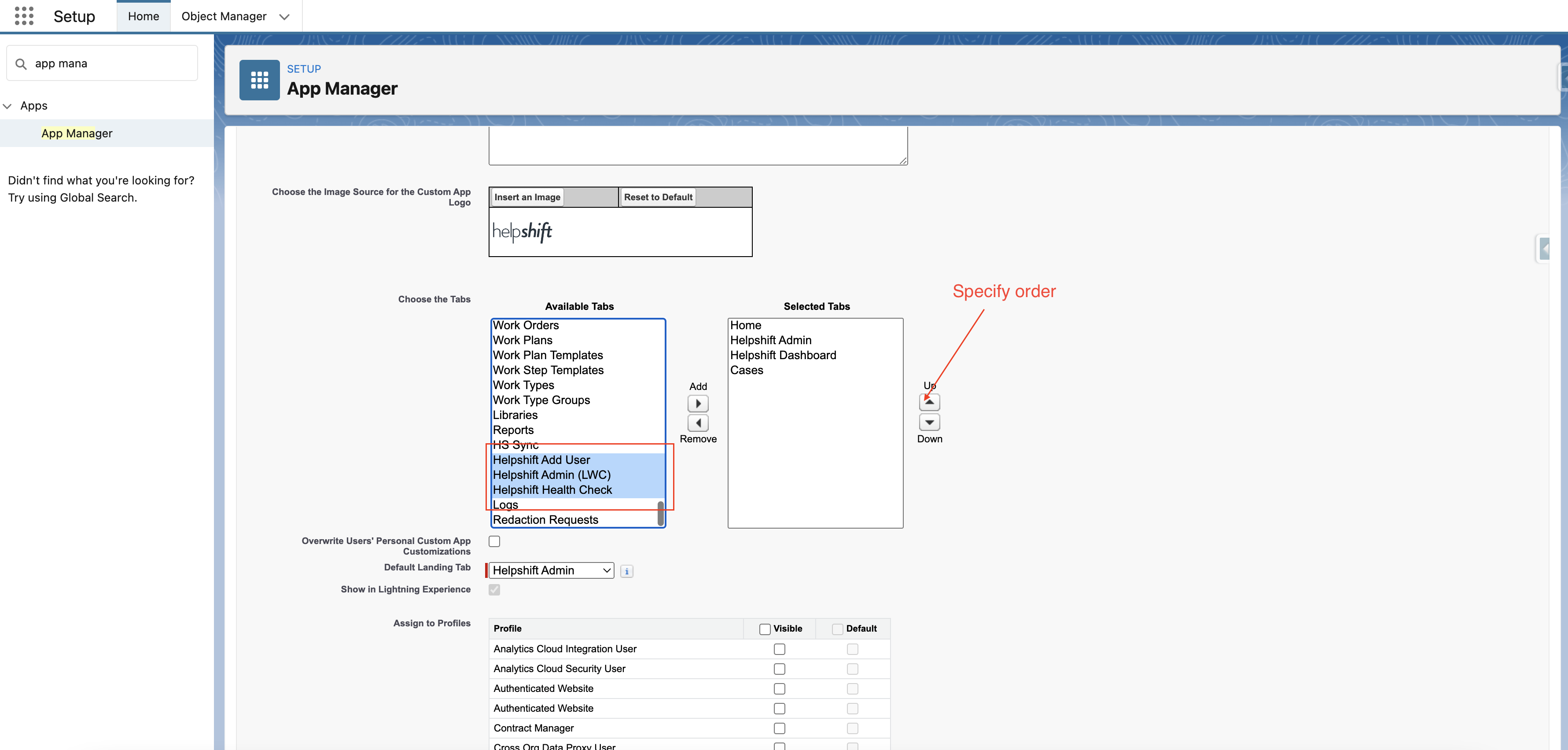 - If Helpshift Admin (LWC) tab is not visible , please follow below steps