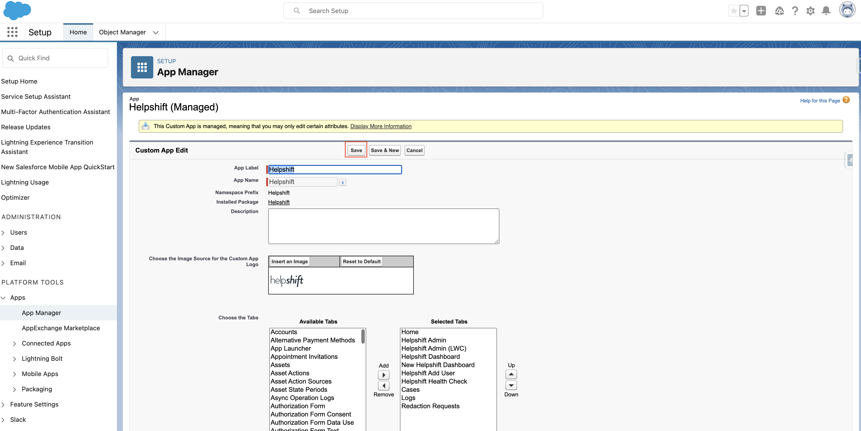 - Helpshift Admin (LWC) tab is automatically included in the Helpshift app