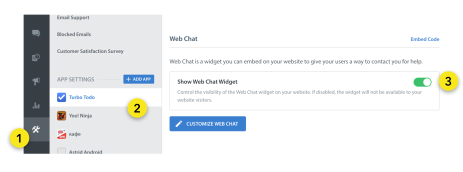 You can find a prepared embed code for your App at Settings > App > Web Chat.